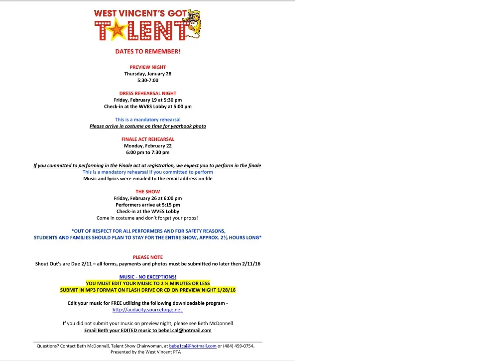 Talent Show - Dates to Remember Quick Reference Sheet PTA Programs Jan 28 Written By Guest User Talent Show Guest User